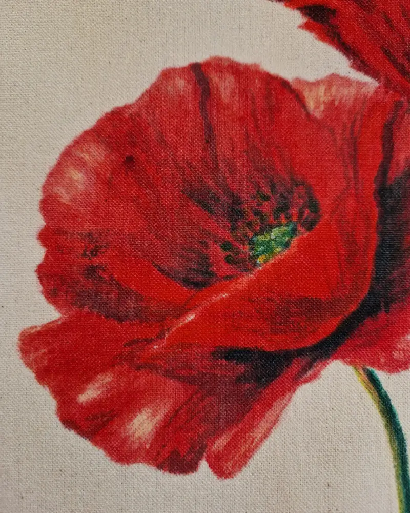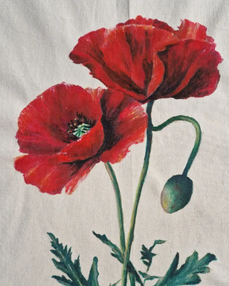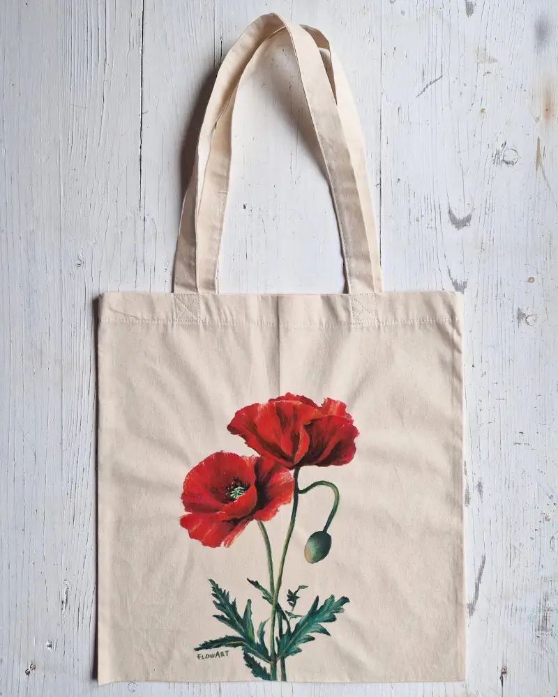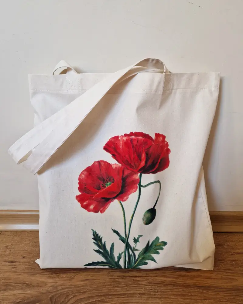 Realizată din pânză durabilă, sacoșa este perfectă pentru uz zilnic: o poți folosi la cumpărături, la plimbări sau ca accesoriu versatil care îți completează stilul personal. Designul expresiv al macului conferă un accent puternic, rafinat și memorabil.