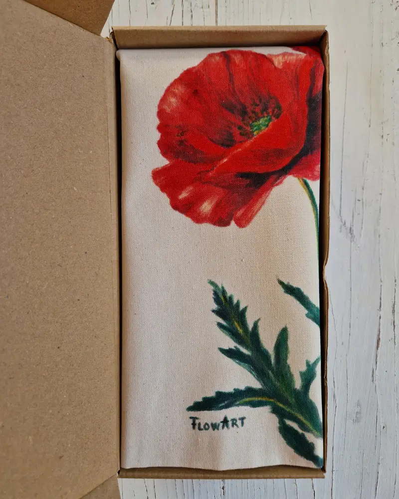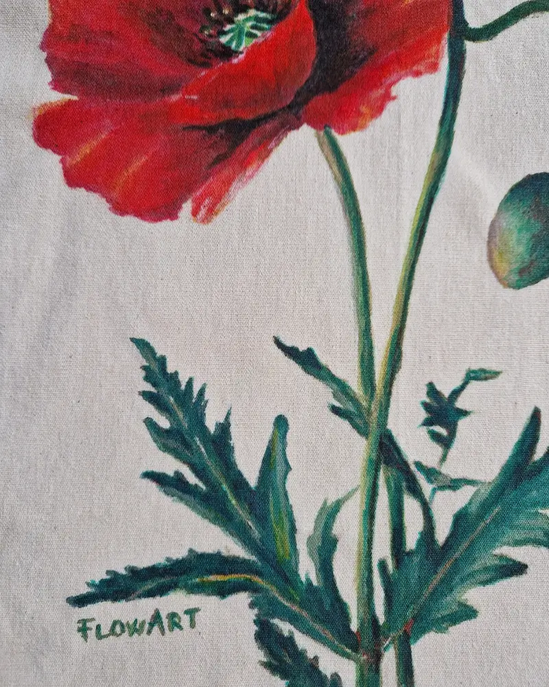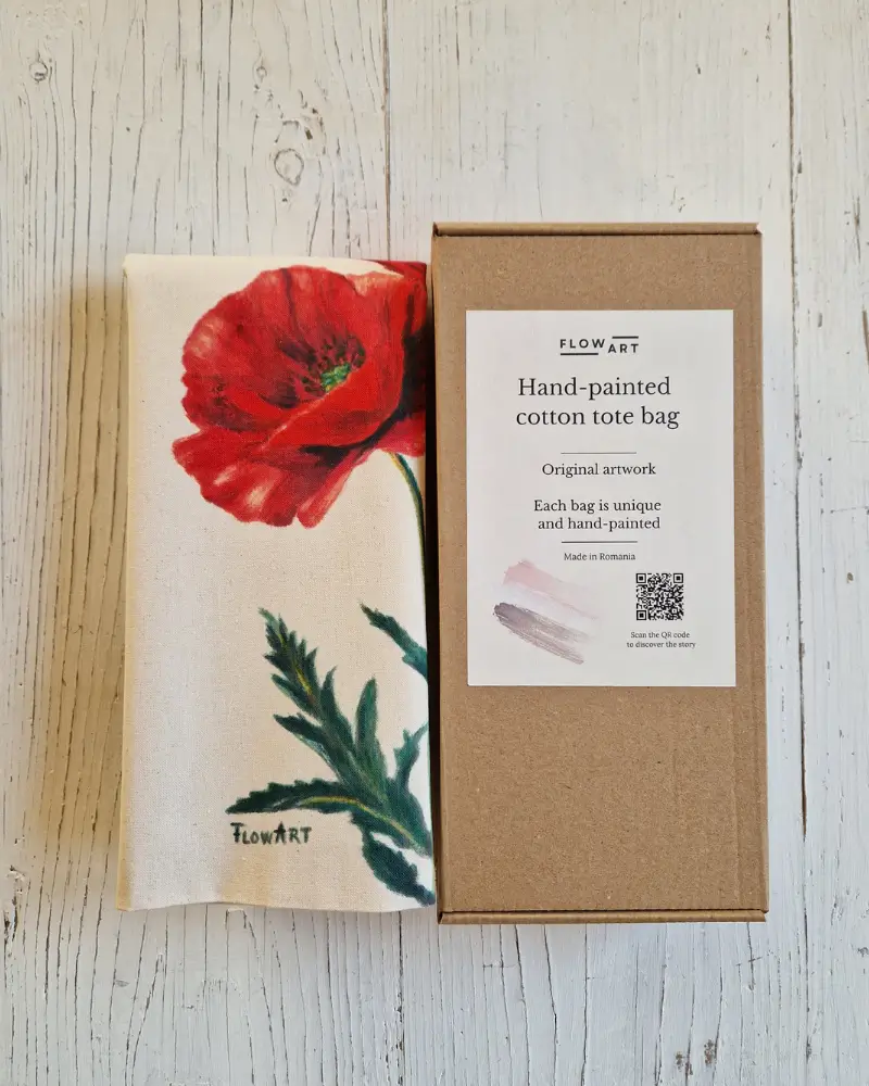 Această sacoșă pictată manual aduce cu sine energia și delicatețea florilor de mac. Fiecare petală este pictată cu atenție în atelierul Flow Art, transformând un accesoriu simplu într-o declarație artistică ce îmbină naturalețea cu eleganța.