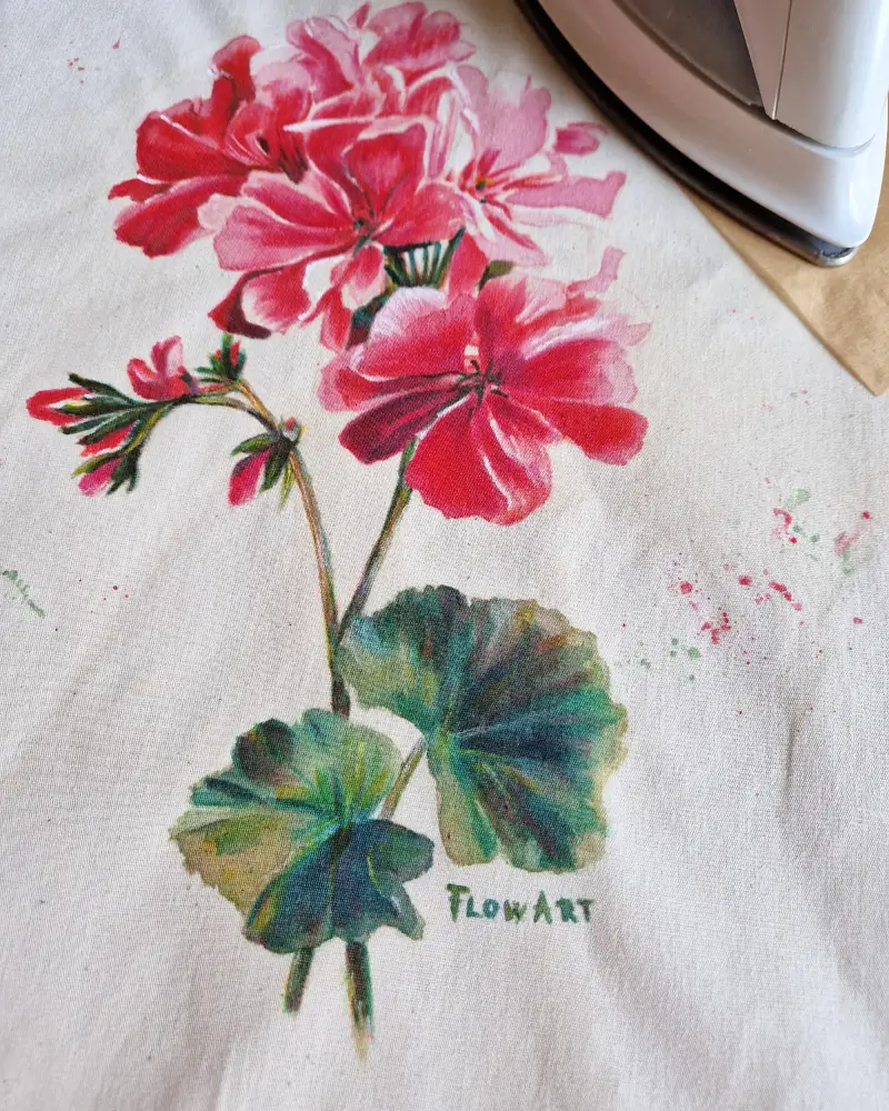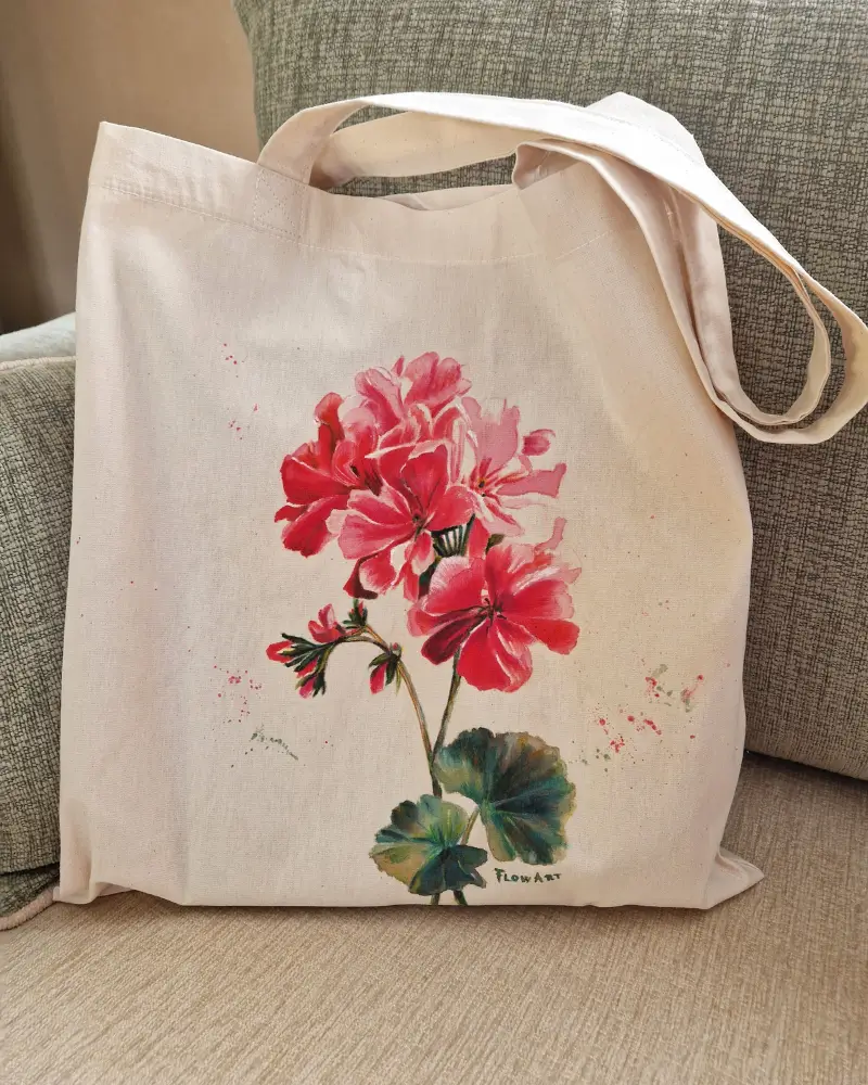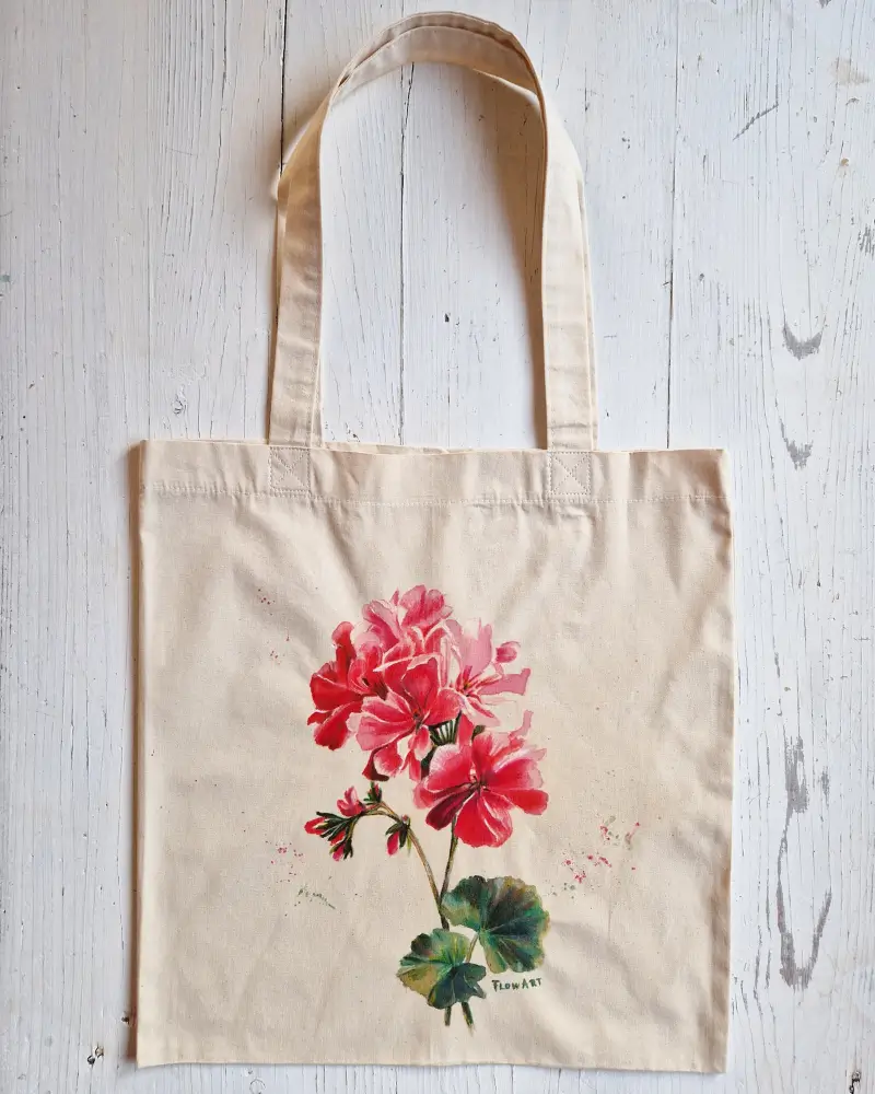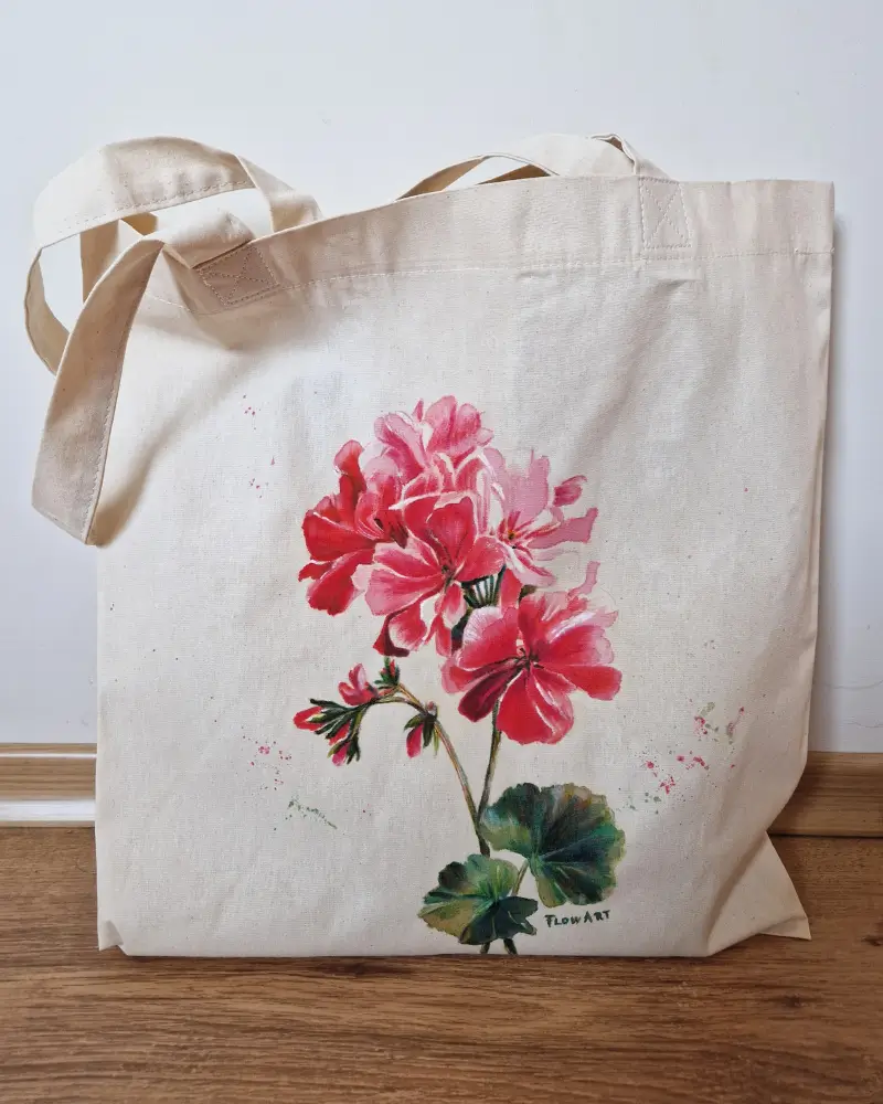 Această sacoșă din pânză este pictată manual, fiecare detaliu fiind realizat cu grijă și atenție.