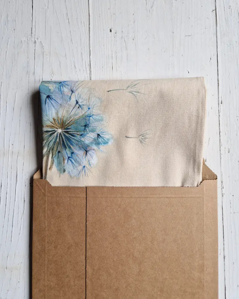 Pânza de bumbac este naturală și, ca orice material neprelucrat chimic, poate să se micșoreze ușor la prima spălare (aprox. 1–2 cm). Aceasta este o caracteristică normală a țesăturilor naturale.