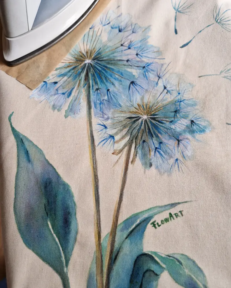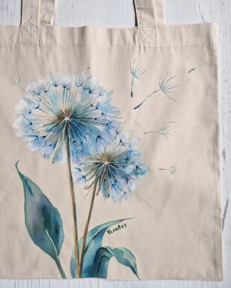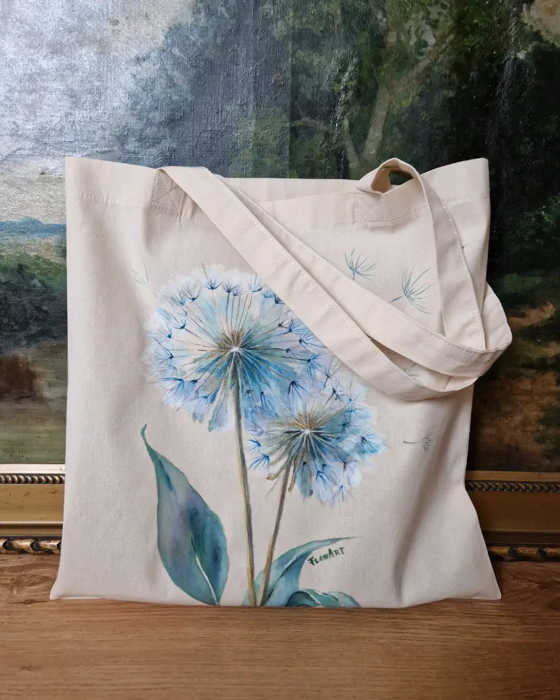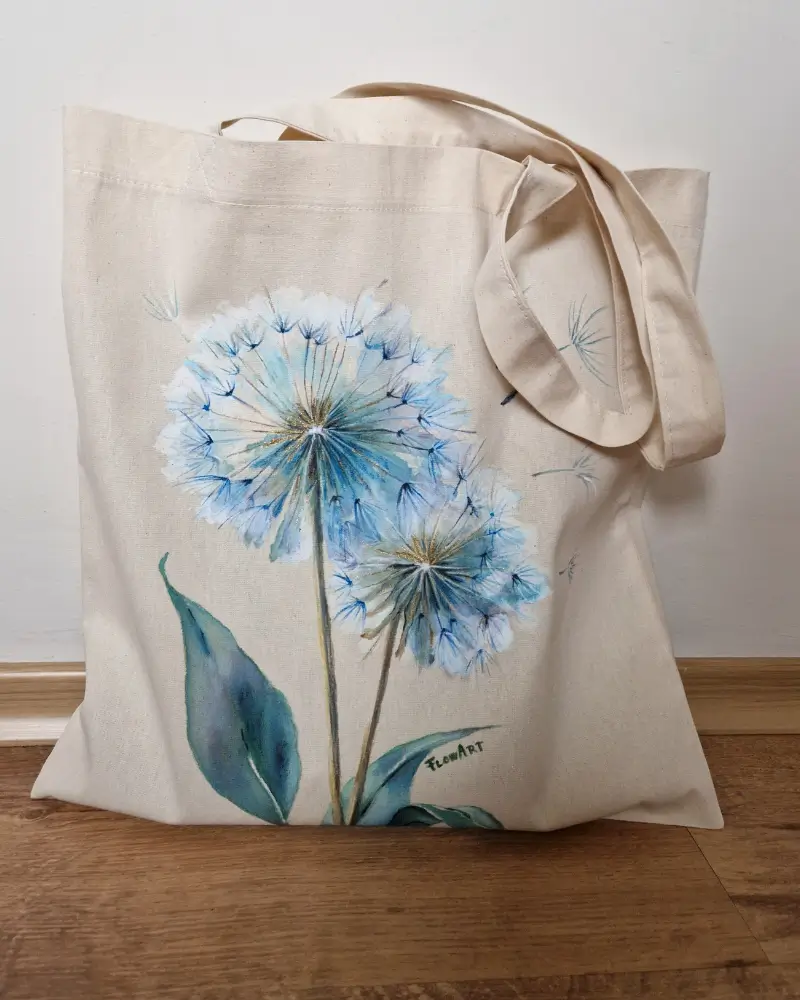 O sacoșă pictată manual, realizată pe pânză din bumbac natural 220 g/m².